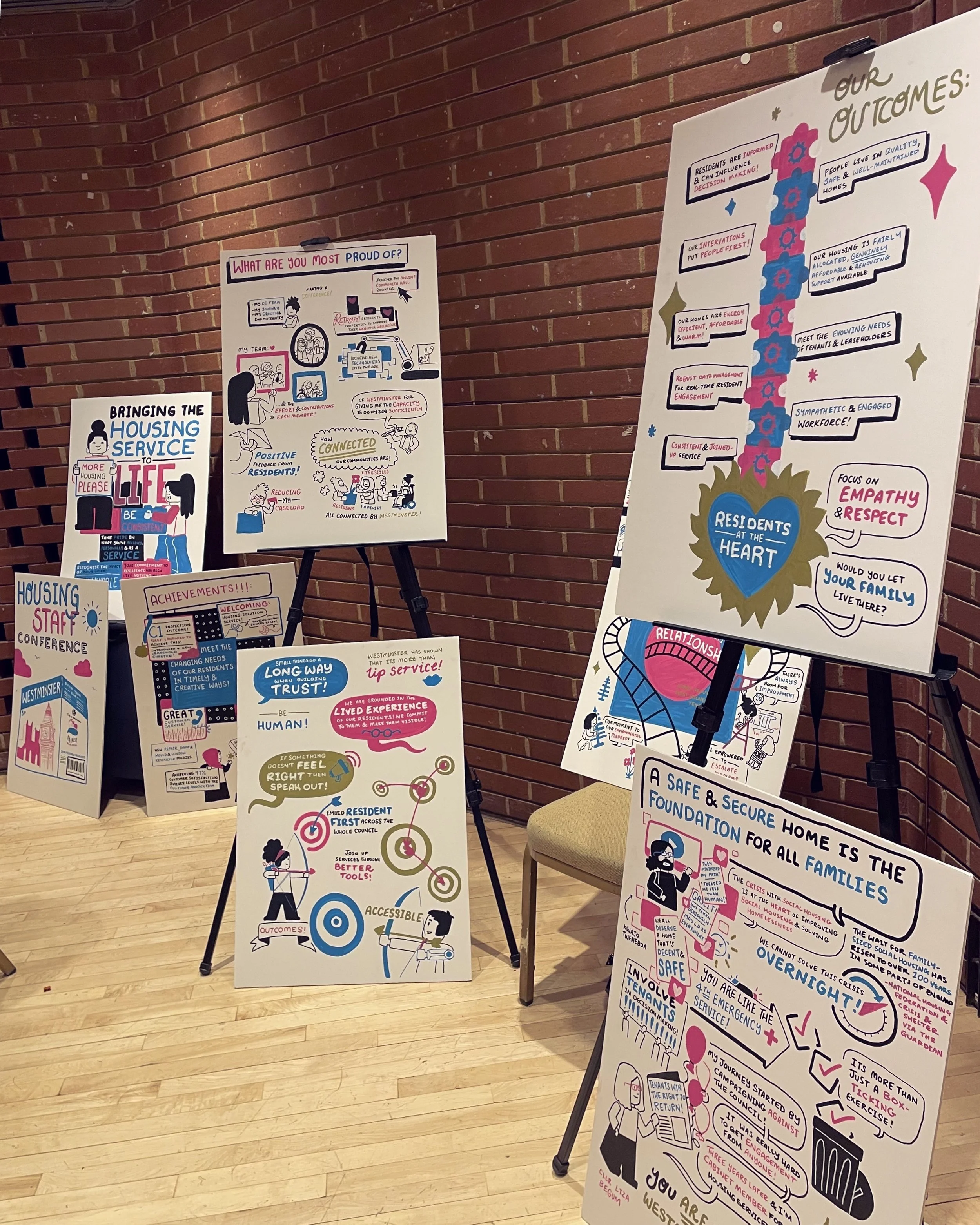 Live illustration at Westminster Council’s Housing service conference. Collecting key quotes and highlights from talks and round table discussions.